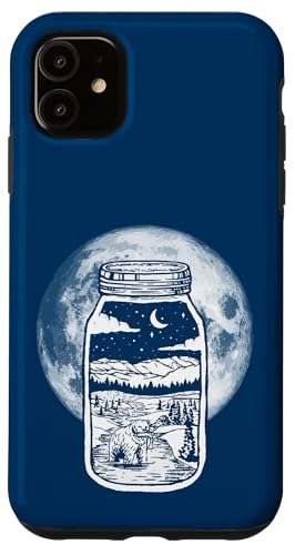 Moonshine Lover Jar Design - Bear, Moon & Mountains Coque pour iPhone 11