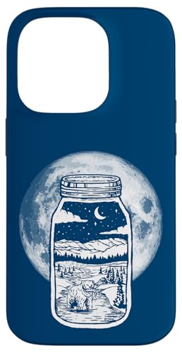 Moonshine Lover Jar Design - Bear, Moon & Mountains Coque pour iPhone 14 Pro