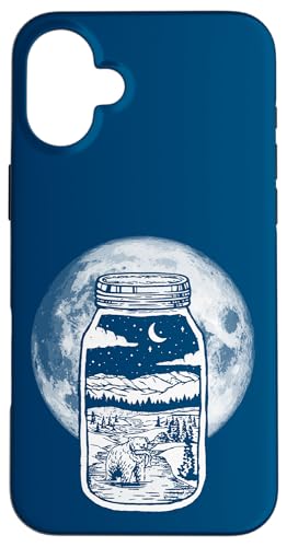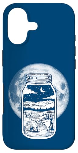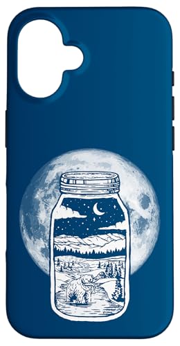 Moonshine Lover Jar Design - Bear, Moon & Mountains Coque pour iPhone 16 Plus