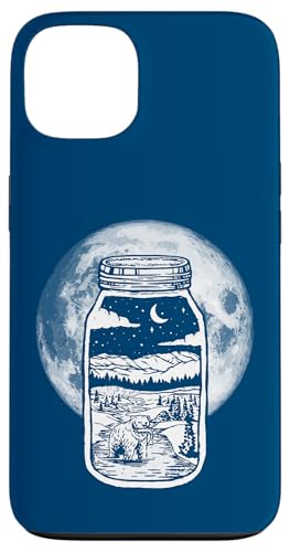 Moonshine Lover Jar Design - Bear, Moon & Mountains Coque pour iPhone 13