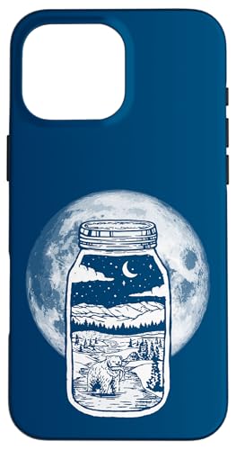 Moonshine Lover Jar Design - Bear, Moon & Mountains Coque pour iPhone 16 Pro Max
