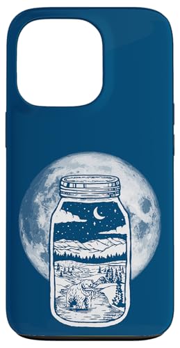 Moonshine Lover Jar Design - Bear, Moon & Mountains Coque pour iPhone 13 Pro