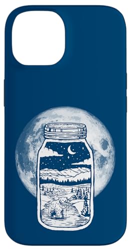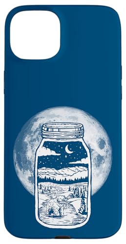 Moonshine Lover Jar Design - Bear, Moon & Mountains Coque pour iPhone 15