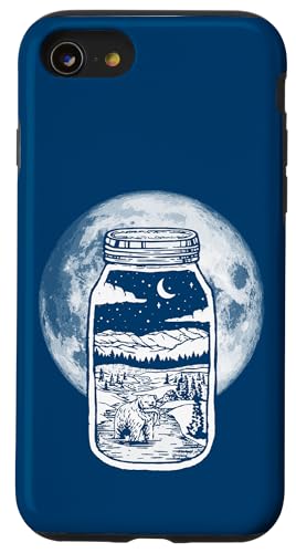 Moonshine Lover Jar Design - Bear, Moon & Mountains Coque pour iPhone SE (2020) / 7/8