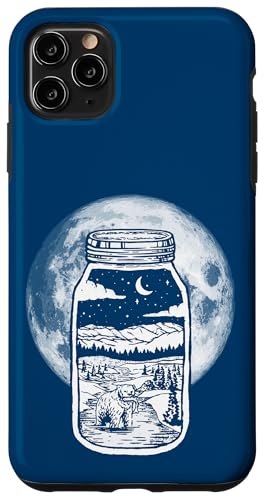 Moonshine Lover Jar Design - Bear, Moon & Mountains Coque pour iPhone 11 Pro Max