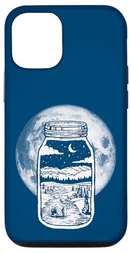 Moonshine Lover Jar Design - Bear, Moon & Mountains Coque pour iPhone 12/12 Pro