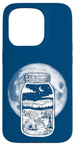 Moonshine Lover Jar Design - Bear, Moon & Mountains Coque pour iPhone 15 Pro