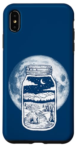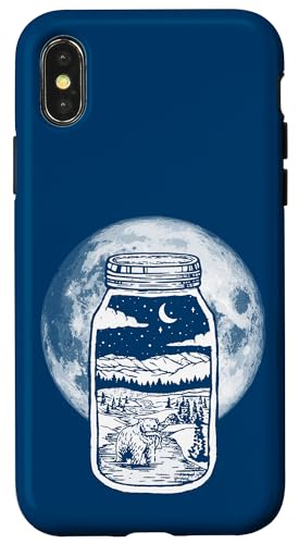 Moonshine Lover Jar Design - Bear, Moon & Mountains Coque pour iPhone XS Max