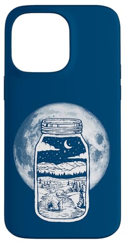 Moonshine Lover Jar Design - Bear, Moon & Mountains Coque pour iPhone 14 Pro Max