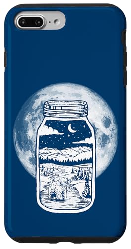 Moonshine Lover Jar Design - Bear, Moon & Mountains Coque pour iPhone 7 Plus/8 Plus