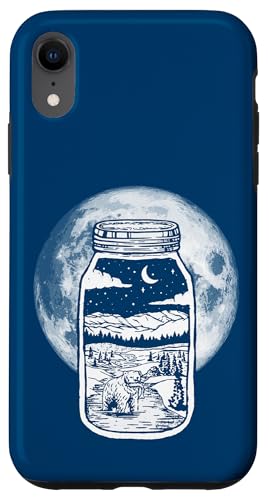 Moonshine Lover Jar Design - Bear, Moon & Mountains Coque pour iPhone XR