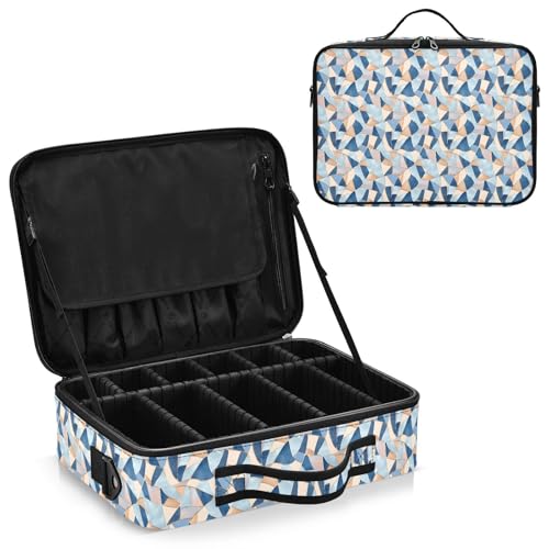 junzan Grand sac de rangement de maquillage en mosaïque bleu beige avec séparateurs et sangle réglable, Mosaïque Bleu Beige, 14.6 x 10.6 x 4.7 inches, Coloré