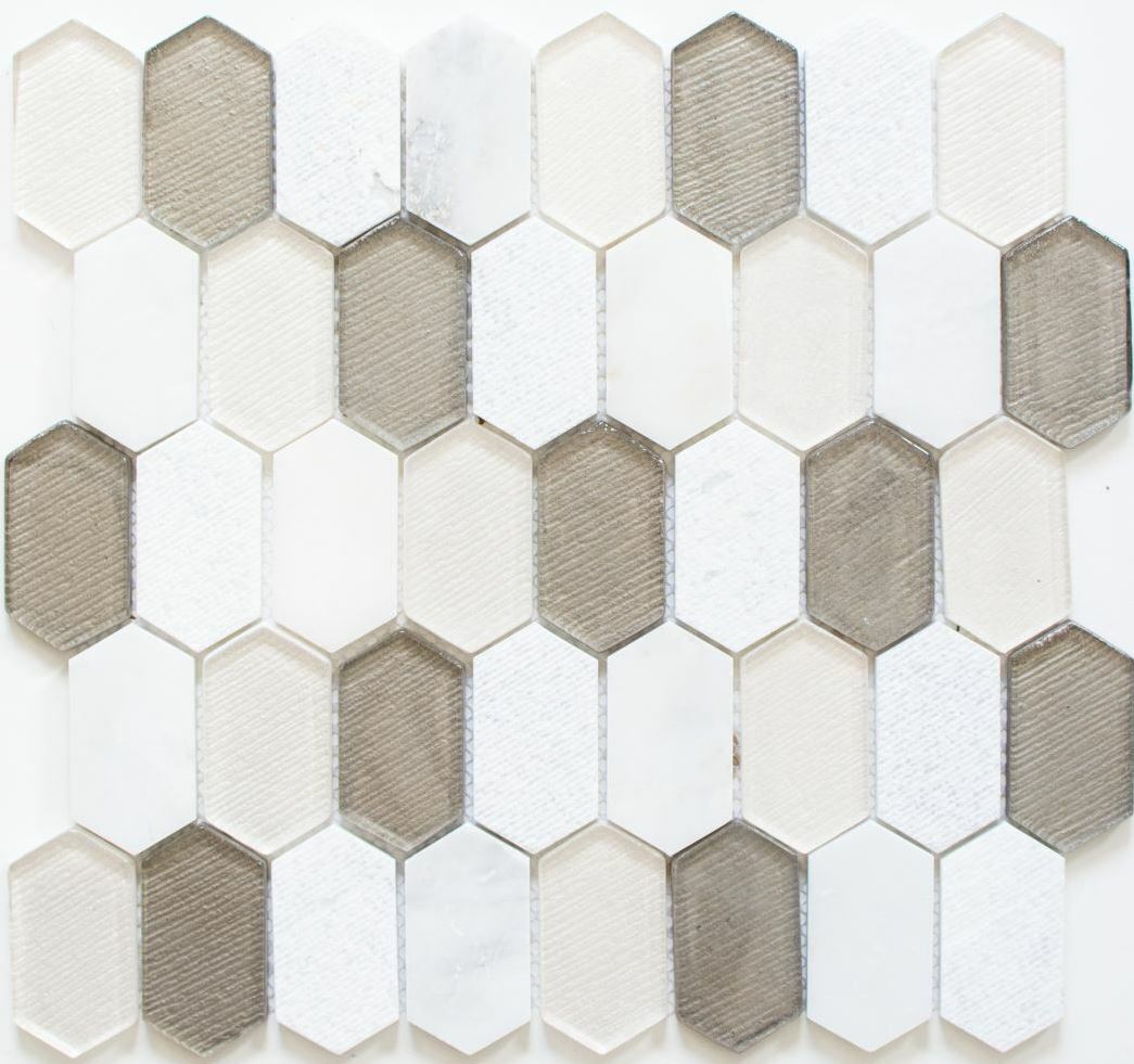 Mosaïque Pierre Naturelle Beige Hexagonal Blanc Gris Mur 85-IN69 10 Mosaikmatten