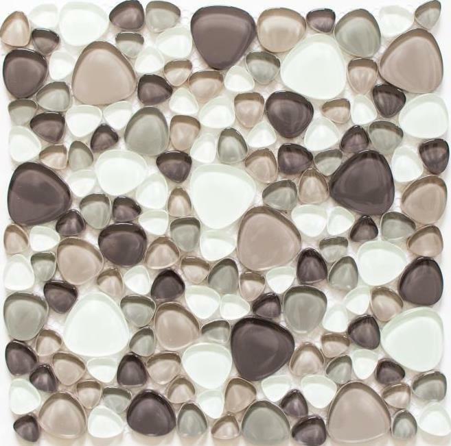 Mosaïque Beige Braun Galets Pâte de Verre Mur Bain 94-PG66 10 Mosaikplatten