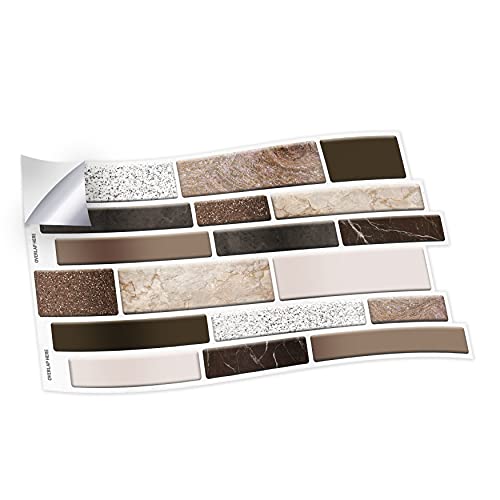 WALPLUS Lot de 12 autocollants muraux en mosaïque marron et beige 28,5 x 14 cm