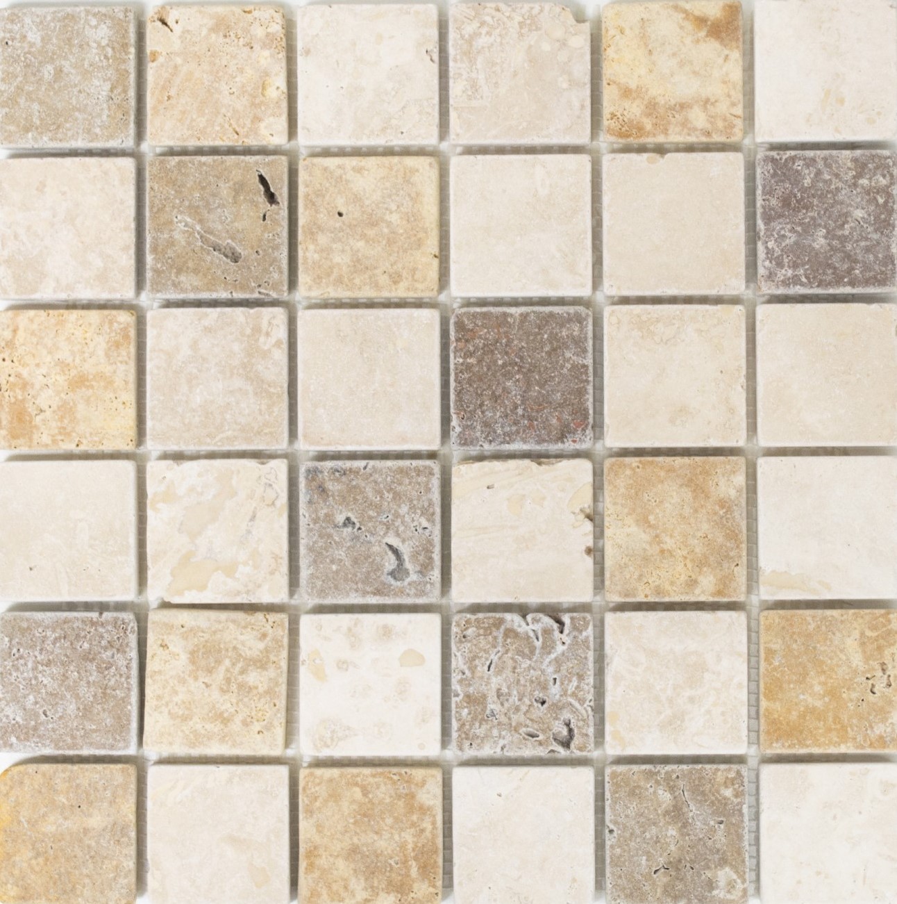 Mosaïque beige 30,5x30,5cm Travertino pierre naturelle mat
