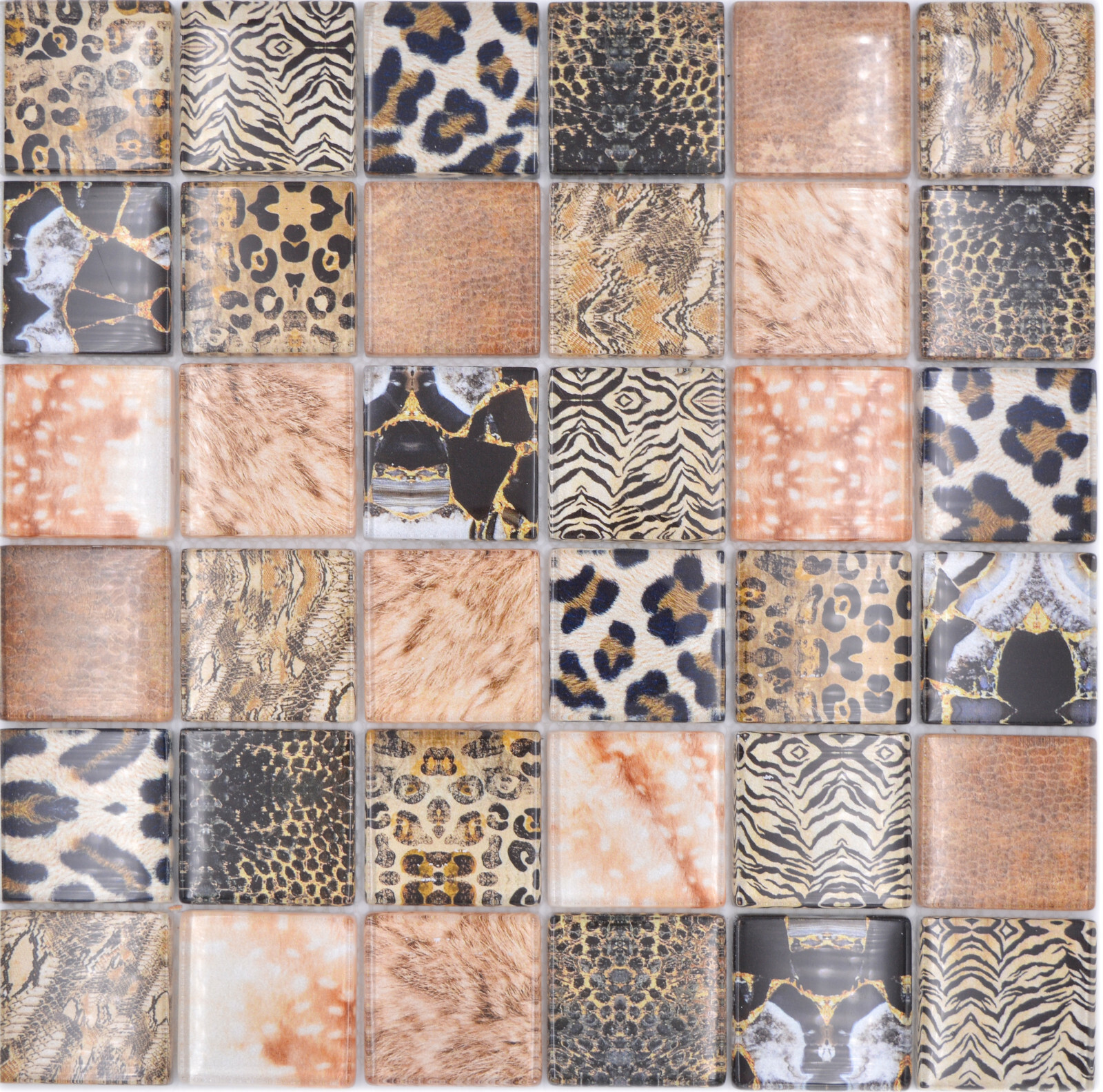 Carreaux de Mosaique Léopard Beige Carré Verre Cuisine Bain Wc WB92-1212 1Matte