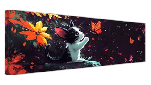 Diamond Painting Chat Diamond Painting Adulte Papillon Peinture Diamant Kit Complet XXL 180x60cm, 5D DIY Strass Point de Croix Loisir Creatif Enfant Mosaïque Manuel pour Home Wall Decoration F1-589