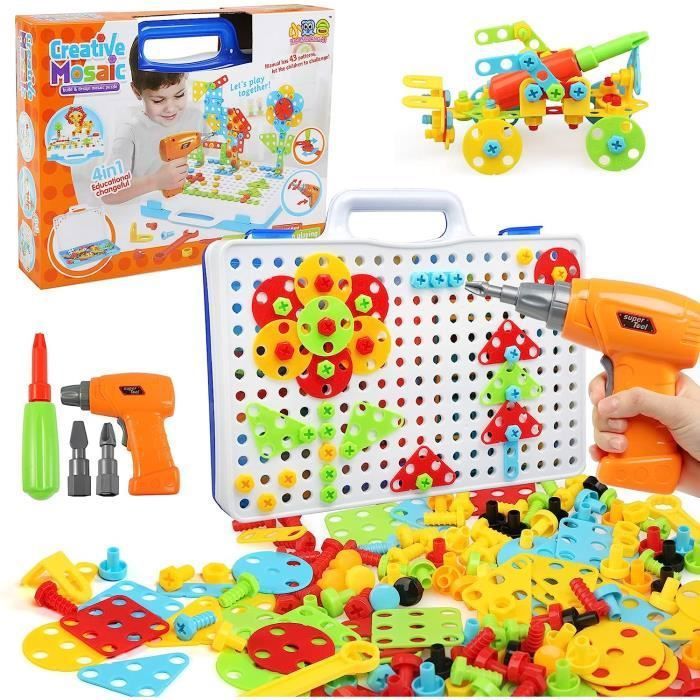 237 Pièces Mosaique Enfant Puzzle 3D Jeu Construction Jouet Montessori Perceuse Électronique Créatif Jouet Jeux Éducatifs