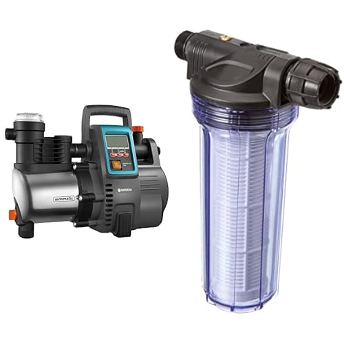 Gardena Station de Pompage 6000/6E Lcd Inox Premium : Pompe Domestique, Débit de 6 000 L/H, Moteur de 1 300 W, Corps en Acier Inoxydable de Qualité & Filtre anti sable 6000 l/h, avec élément filtrant