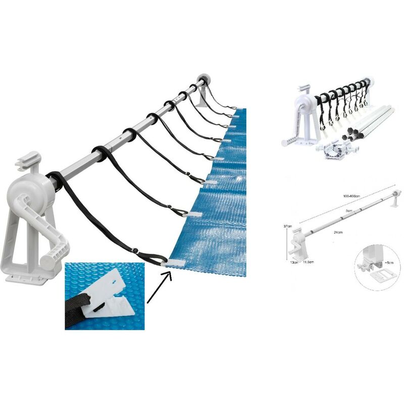 Bâches-Piscines.Com – Enrouleur de bâche de piscine télescopique jusqu'à 4,30 m – Pieds réglables de 1 à 1,80 m – 9 sandows de fixation inclus