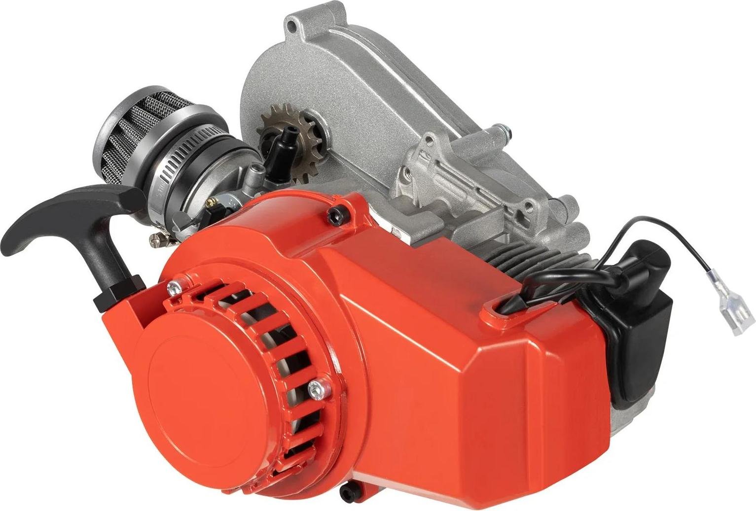 Moteur à essence 49 cm³ - Démarreur à câble 2 temps (Pull Start) pour pocket bike, mini dirt bike, ATV - Allumage électronique - Filtre à air - 1,9 kW à 7000 tr/min - jusqu'à 48 km/h - Orange