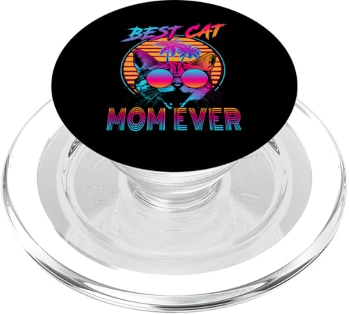 Best Cat Mom Ever Vintage 80s Funny Mothers Day Cat Lover PopSockets PopGrip Adhésif
