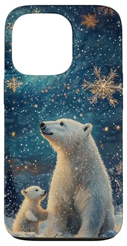 Mama Winter Bear Funny Mom Animal Mothers sur Fond Bleu Coque pour iPhone 13 Pro