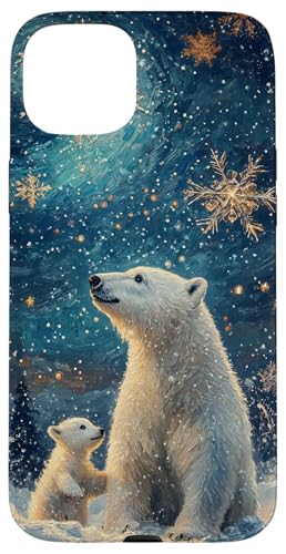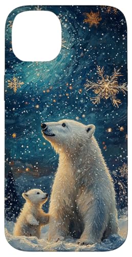Mama Winter Bear Funny Mom Animal Mothers sur Fond Bleu Coque pour iPhone 15 Plus