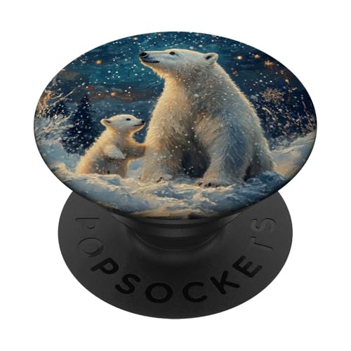 Mama Winter Bear Funny Mom Animal Mothers sur Fond Bleu PopSockets PopGrip Adhésif