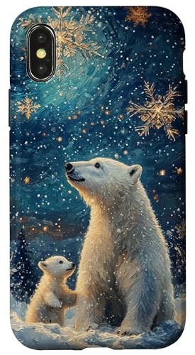 Mama Winter Bear Funny Mom Animal Mothers sur Fond Bleu Coque pour iPhone X/XS