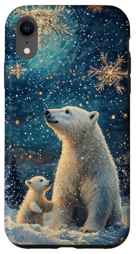Mama Winter Bear Funny Mom Animal Mothers sur Fond Bleu Coque pour iPhone XR
