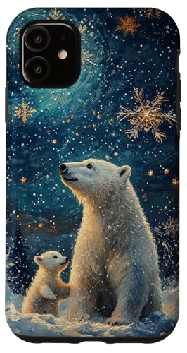 Mama Winter Bear Funny Mom Animal Mothers sur Fond Bleu Coque pour iPhone 11