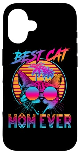 Best Cat Mom Ever Vintage 80s Funny Mothers Day Cat Lover Coque pour iPhone 16