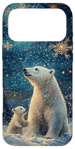 Mama Winter Bear Funny Mom Animal Mothers sur Fond Bleu Coque pour iPhone 14 Pro Max