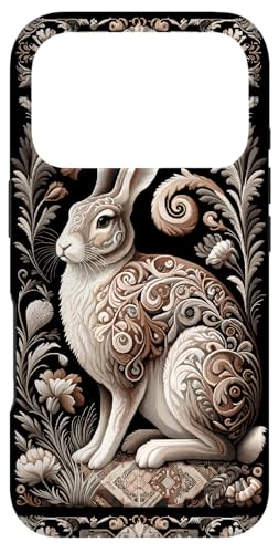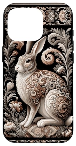 Vintage Lapin Artwork Élégant Tapisserie Motif Coque pour iPhone 16 Pro