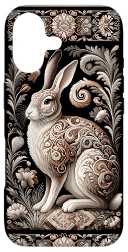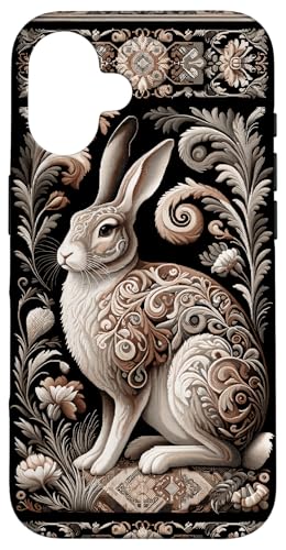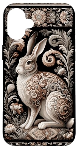 Vintage Lapin Artwork Élégant Tapisserie Motif Coque pour iPhone 16 Plus