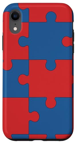 Bleu et Rouge Impression de Motif de Puzzle Coque pour iPhone XR