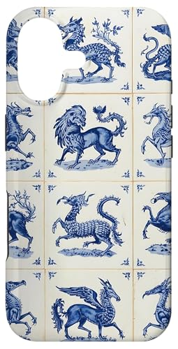 Blue Delft Mythique Animaux Fantaisie mosaïque ornés Motif Coque pour iPhone 17