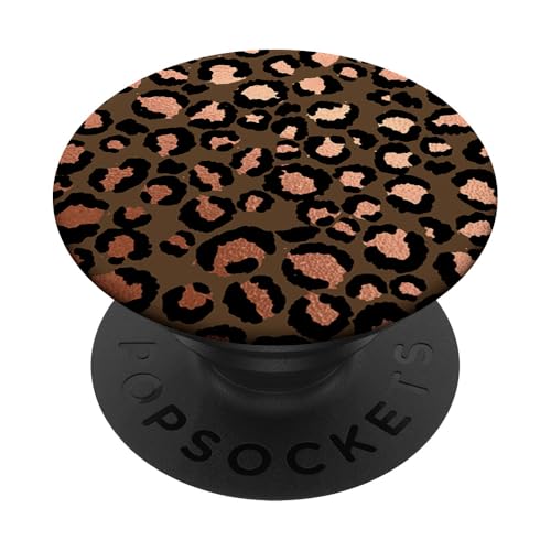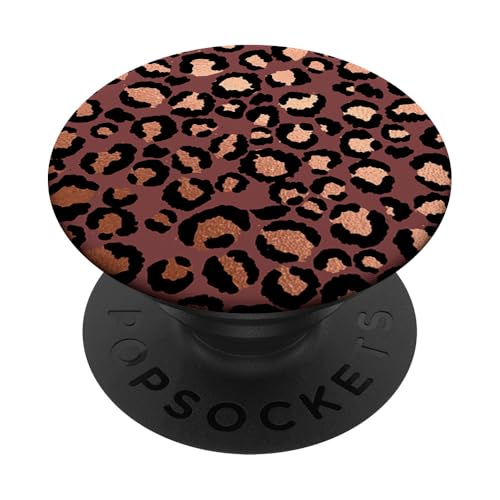 Rose Saumon Noir Motif Léopard Brun PopSockets PopGrip Adhésif