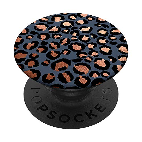 Rose Saumon Noir Motif Léopard Bleu-Gris PopSockets Support et Grip pour Smartphones et Tablettes