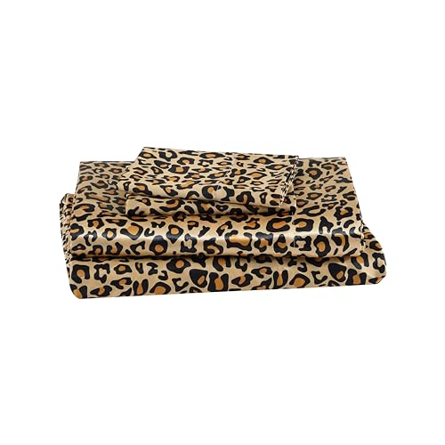 Elite Home Products, Inc. Parure de lit 4 pièces en Satin uni pour Grand lit Motif léopard