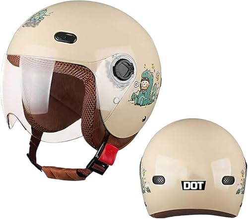 Demi-Casque De Moto Électrique pour Enfants, Demi-Coque Approuvée par La ECE, Casque Ouvert pour Enfants De 2 À 14 Ans, Casquette Rétro pour Jeunes Garçons Et Filles C,46-54cm