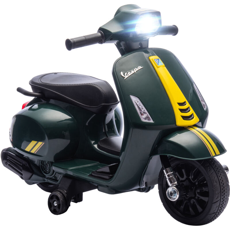 Vespa Scooter Moto électrique - HOMCOM - Enfants 6 V dim. 108L x 49l x 75H cm Musique klaxon 2 roues auxiliaires - 3-6 ans - Blanc
