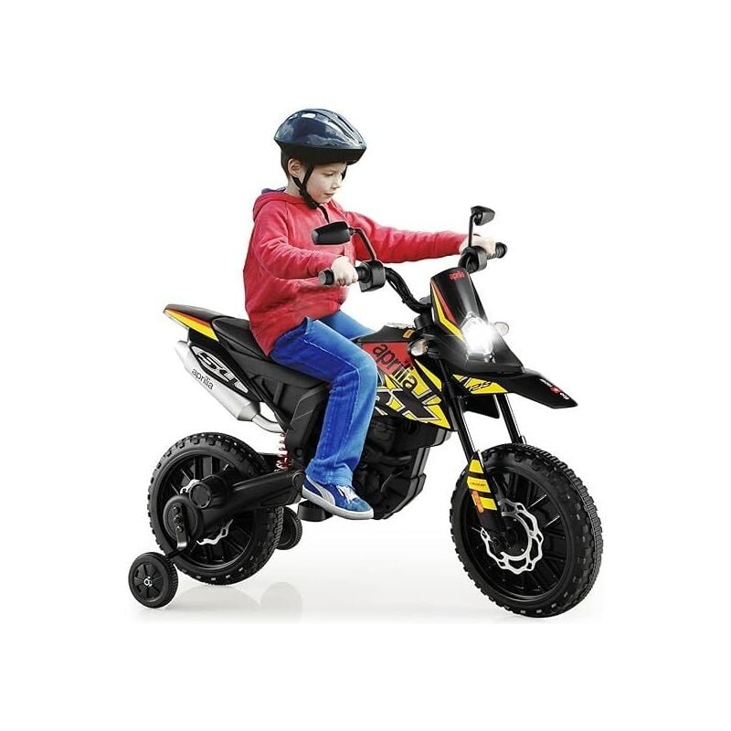 Costway - Aprilia Moto Électrique pour Enfants 3-8 Ans avec Musique & Lumière, Voiture Électrique Enfants avec 2 Roues d'Entraînement, Vitesse 5,5-6
