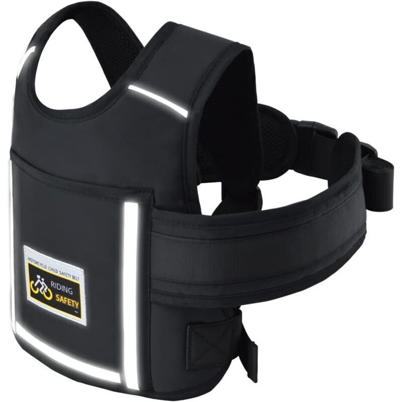 Harnais Moto Enfant: Harnais De Securite Enfant Moto, Matériau Respirant, Conception à Bande Réfléchissante, Avec Poche, Réglable Ceinture Motos Enfants Convient Aux Enfants De 2 à 15 Ans (Noir)