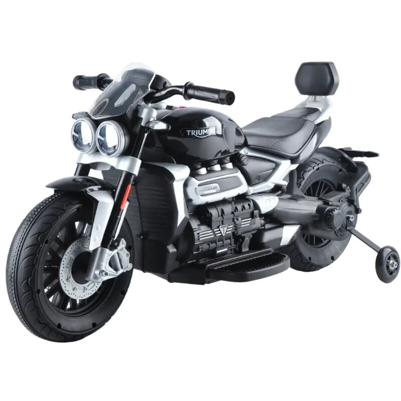 Berghoff – Moto électrique enfant 12V – Design attrayant – Siège en cuir artificiel – Pneus en caoutchouc EVA – Musique intégrée – 2 à 5 ans – Noir