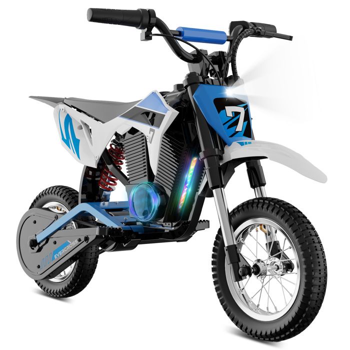 Moto Electrique Enfants EVERCROSS TECH EV12MP-Moteur 300W 3 Modes de Vitesse15 KM Pneu 12 Musique Bluetooth Cadeau Bleu