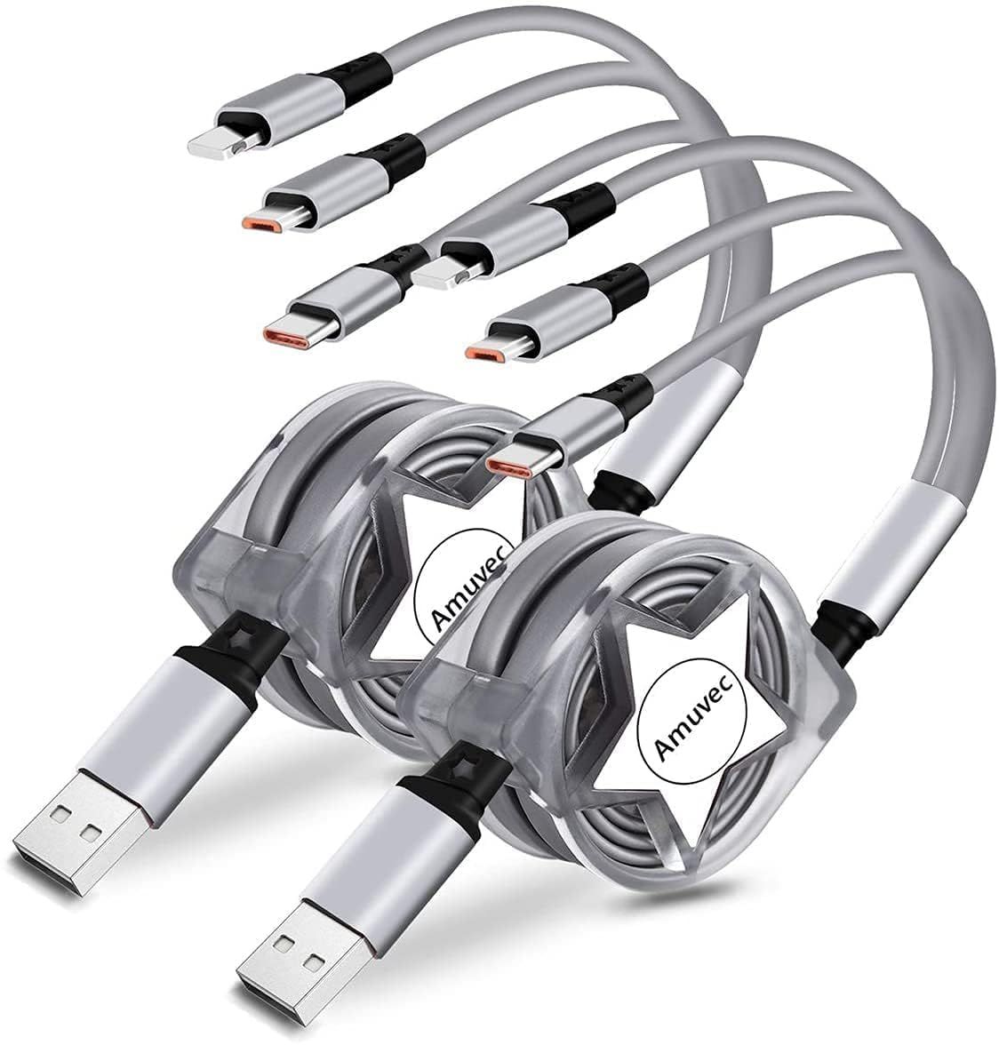 Câble De Chargeur Multiple Rétractable [3a 1m 2-Paquet], Câble De Chargeur 3 En 1 À Charge Rapide Avec Connecteurs Ip, Type C, Micro Usb Samsung Galaxy, Lg, Huawei, Moto, Xiaomi, Sony, Ps4