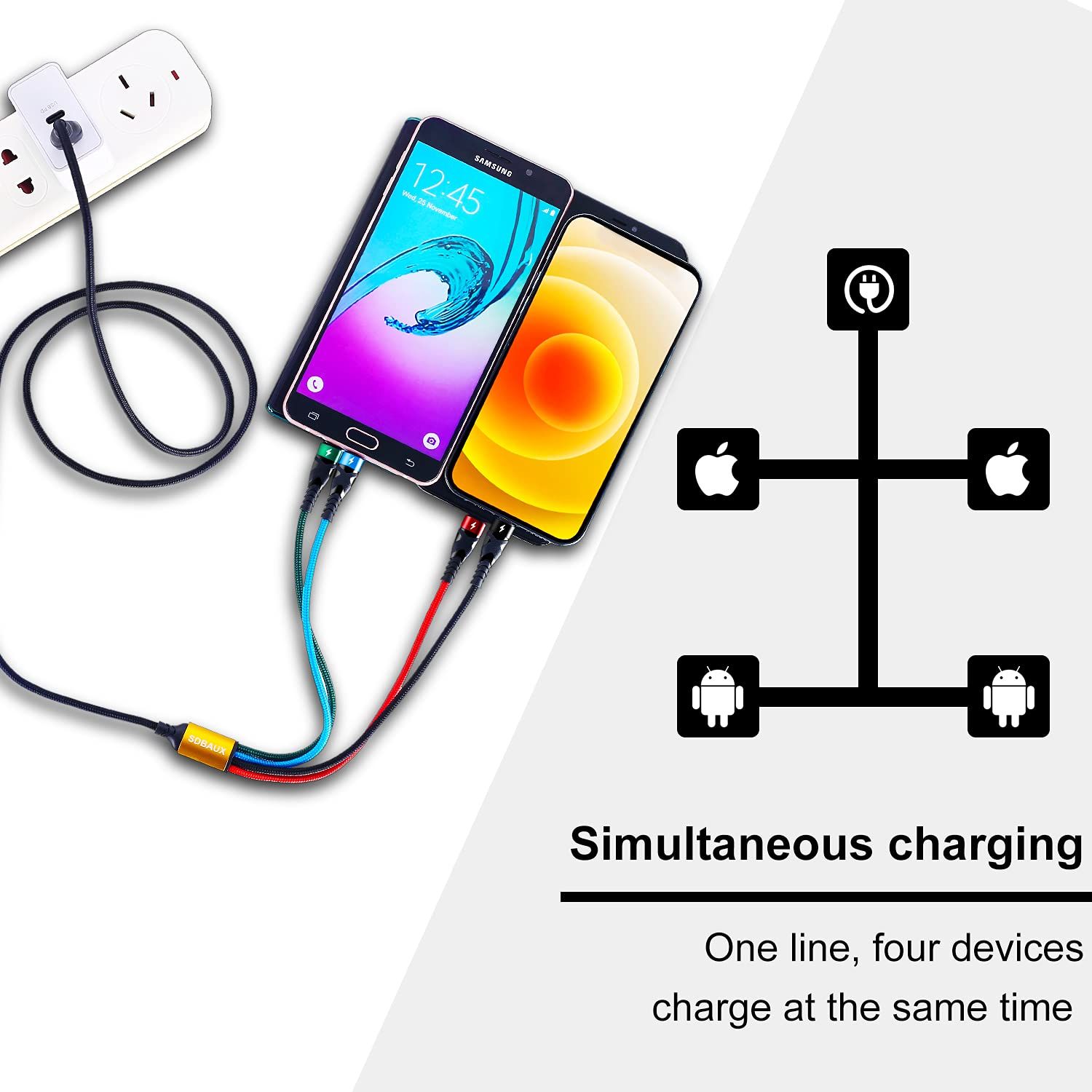 Câble de Charge Multi Chargeurs 4 en 1, 3A 1.2M Tressé Câble USB Universel avec Connecteurs 2*Phone/Micro USB/Type C, pour iOS Téléphones, Android Galaxy, LG, Moto, Sony, Huawei, Xiaomi, PS4